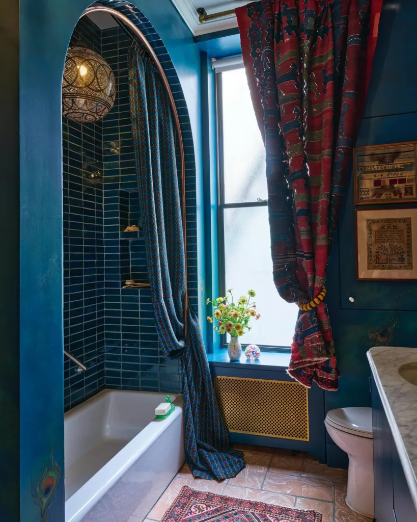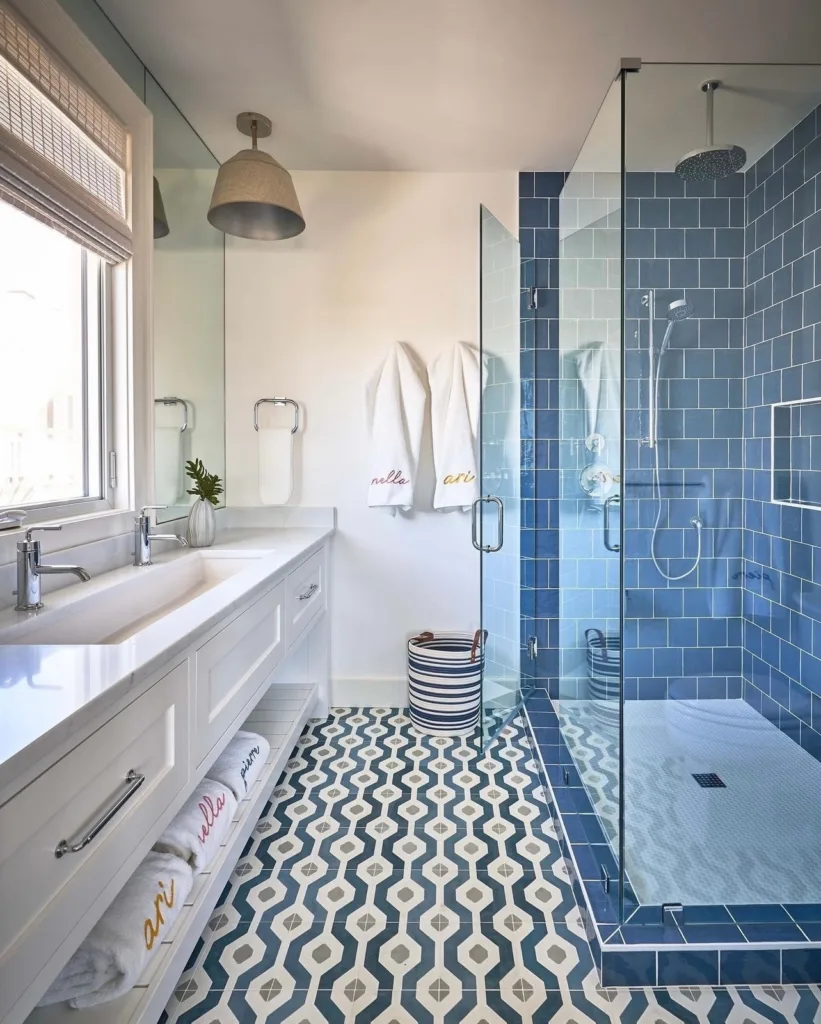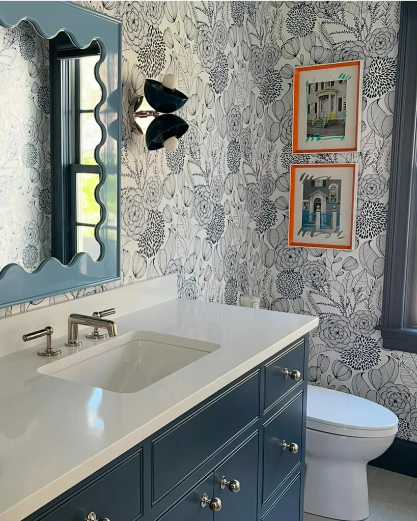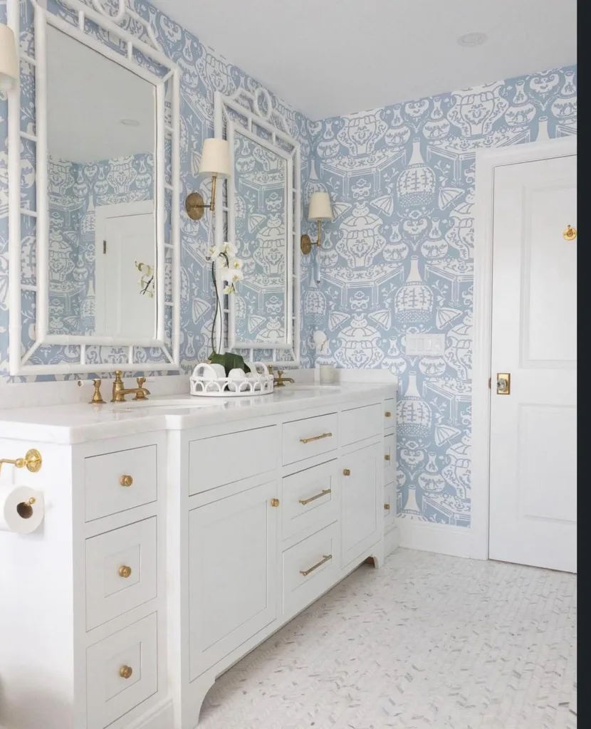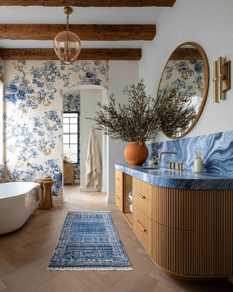 Texture matters as much as color. Glossy blue tiles reflect light, adding brightness, while matte finishes create a softer, more grounded feel. Wallpapers with blue patterns can add personality without the permanence of paint or tile, making them a great option for renters or those who like to change things up frequently.
