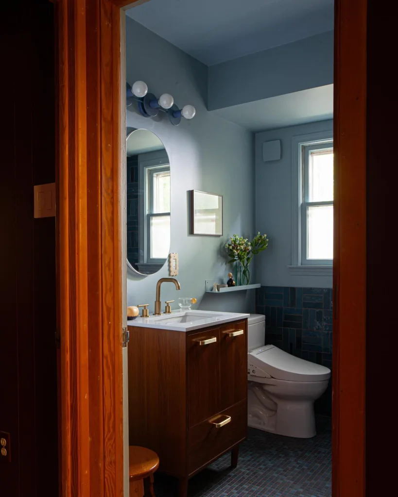Selecting the perfect shade of blue depends on your bathroom’s size, lighting, and desired mood. In small bathrooms, lighter blues like sky or baby blue can make the space feel larger and more open. In larger bathrooms, deeper shades like navy or indigo add warmth and sophistication. Consider the undertones of your blue—cool blues with gray or green bases feel modern, while warm blues with purple or red undertones add a cozy, inviting feel.