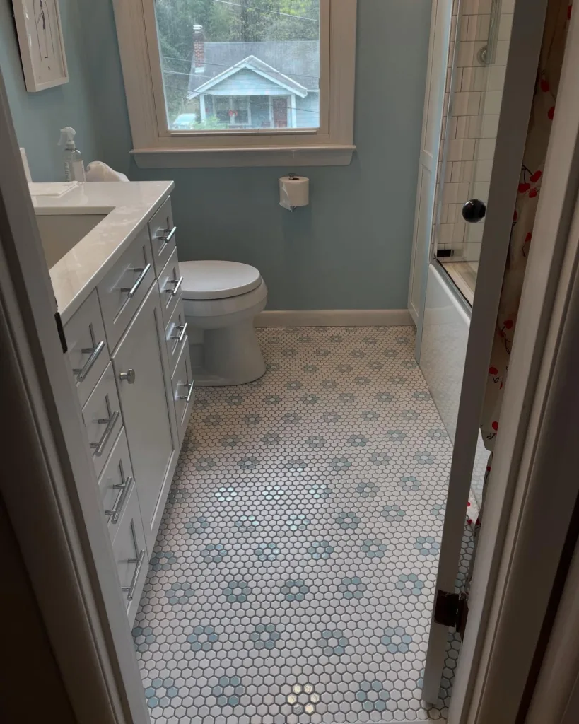 Natural light also plays a role. Bathrooms with ample sunlight can handle darker blues without feeling cramped, while those with limited light benefit from paler shades to avoid a cave-like effect. Test paint samples or tile swatches in your space to see how they look under your bathroom’s lighting conditions.
