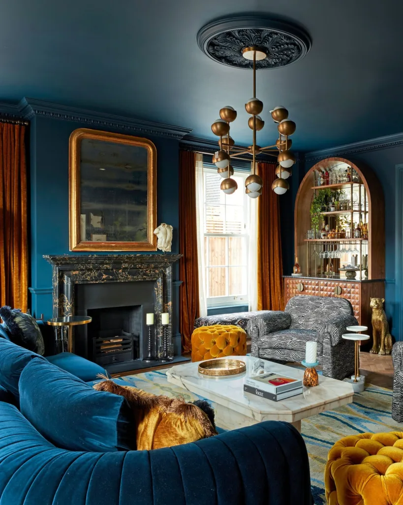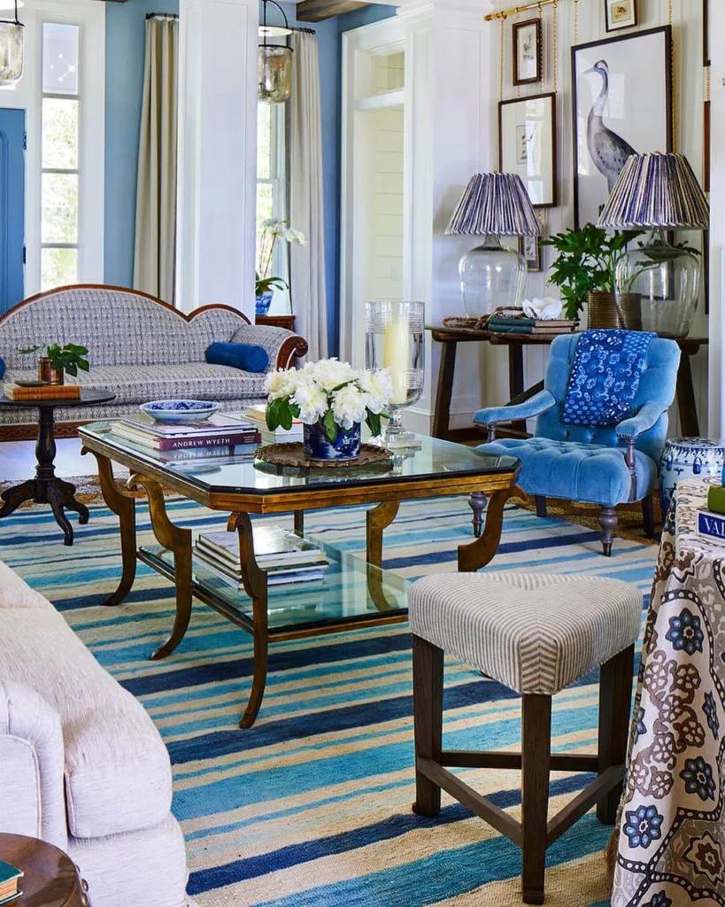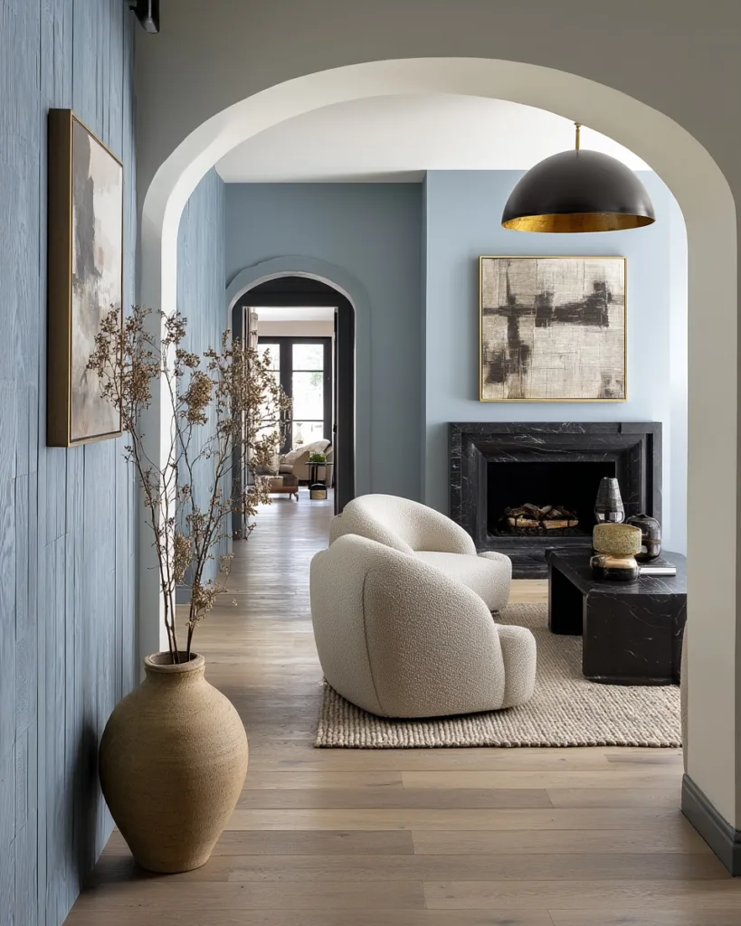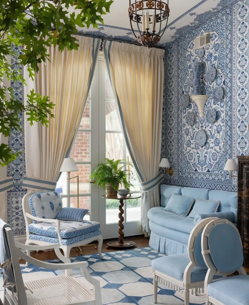 Designers are also experimenting with blue in unexpected ways, such as blue ceilings or cabinet interiors, for a surprise pop of color. Mixed metals—brass, chrome, and matte black—pair beautifully with blue, creating a balanced, luxurious look. For maximalists, layering multiple blue shades in one space, like a navy sofa with turquoise pillows and sky-blue walls, creates a vibrant, eclectic aesthetic.