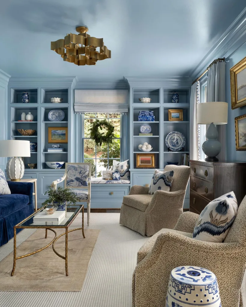 In 2026, designers are getting creative with blue by incorporating it in unexpected areas. A blue-painted ceiling can add depth and drama, drawing the eye upward. Blue bookshelves or built-in cabinetry can serve as a functional yet stylish focal point. Even smaller details, like blue lamp shades or blue-trimmed mirrors, can make a surprising impact.