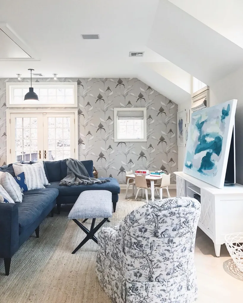 Texture is equally important. Glossy blue finishes, like lacquered furniture, reflect light and add a modern edge, while matte or woven textures, like a blue wool rug, feel grounded and cozy. Wallpapers with blue patterns, such as florals or geometrics, can add personality without the permanence of paint, making them ideal for renters or those who love to refresh their decor frequently.