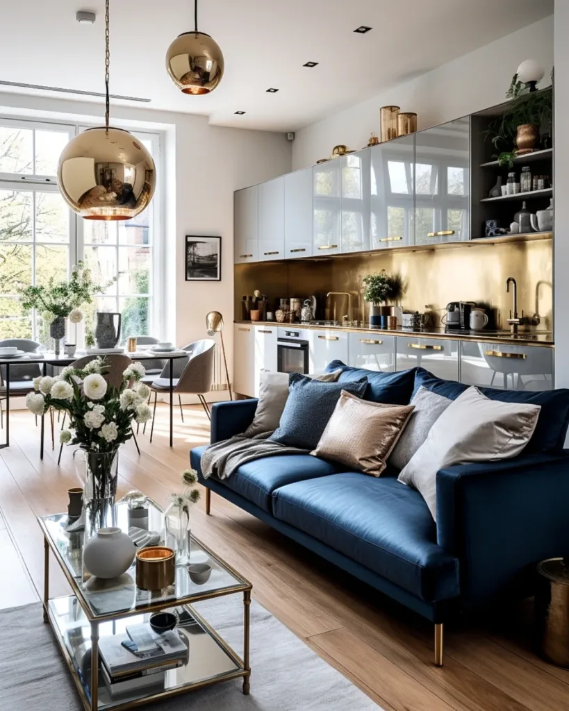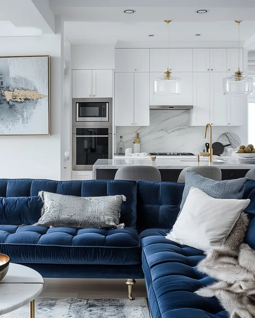For those hesitant to commit to large-scale blue elements, accents are a perfect starting point. Blue throw pillows, blankets, or vases can add pops of color that are easy to swap out seasonally. A blue ceramic lamp or a set of blue-framed artwork can tie the room together without dominating the design. Mix shades like aqua, navy, and powder blue for a layered, dynamic look.